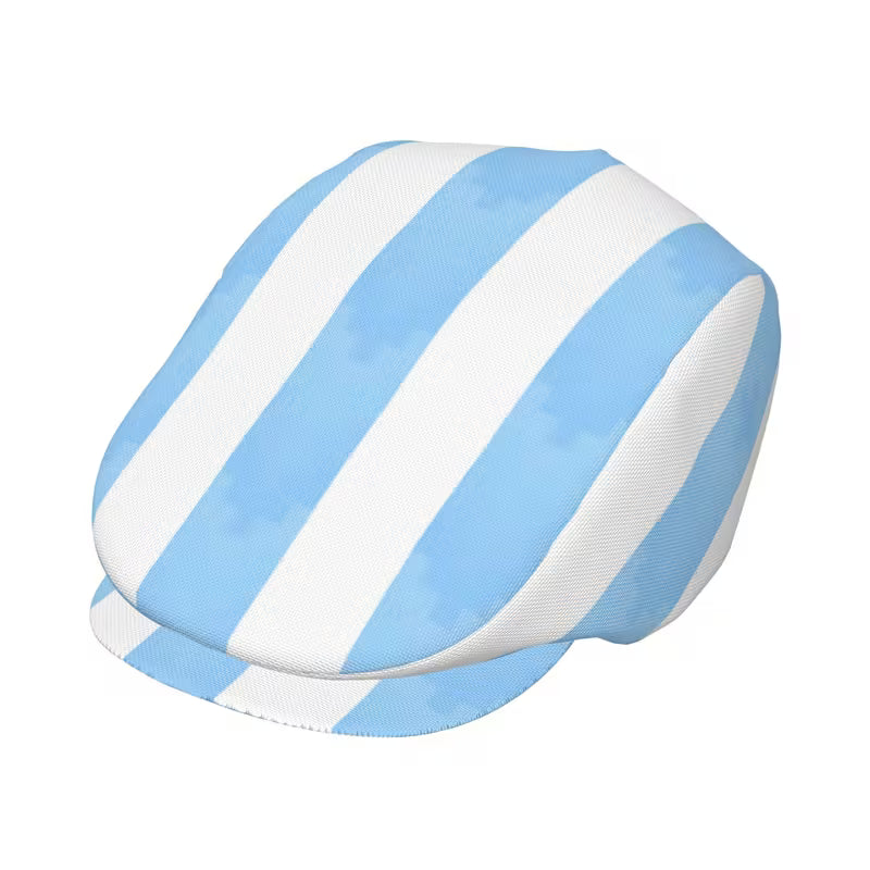Blue and White Pinstriped Newsboy Cap